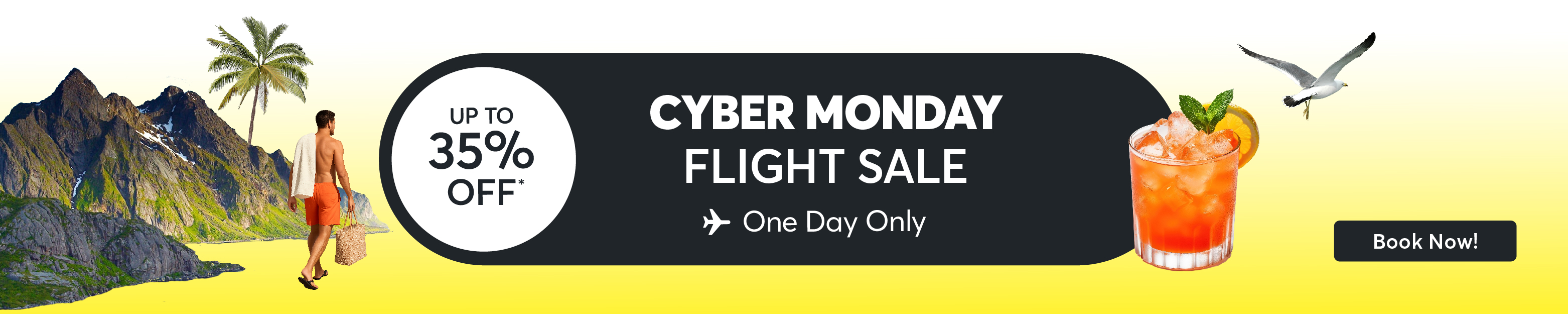 *Fare sale discount: up to 35% off base fare only. Up to 35% off on Tuesdays & Wednesdays, up to 25% off on Mondays & Thursdays, up to 20% off on Fridays to Sundays. Promo code: CYBER35. Book by: 11:59 pm MST 12/01/2025. Travel between: 12/08/25 to 10/24/26. Blackout dates: n/a. Markets: intra AB-BC. Booking class: Bottom 6. Subject to availability at the time of booking.
